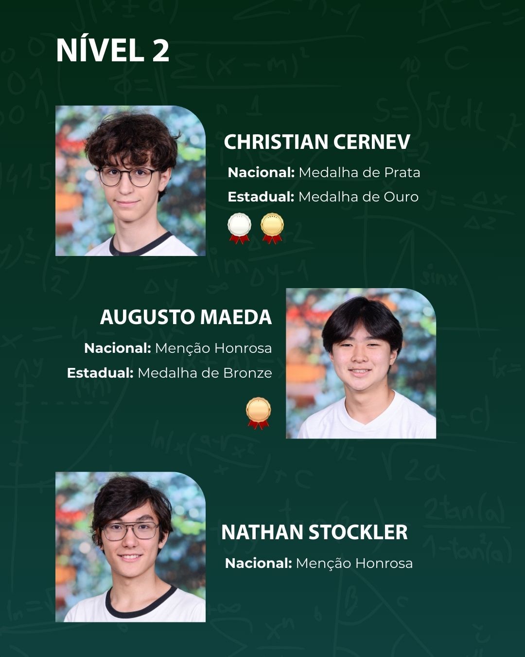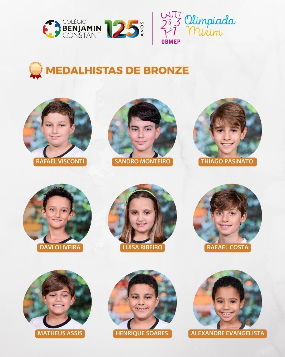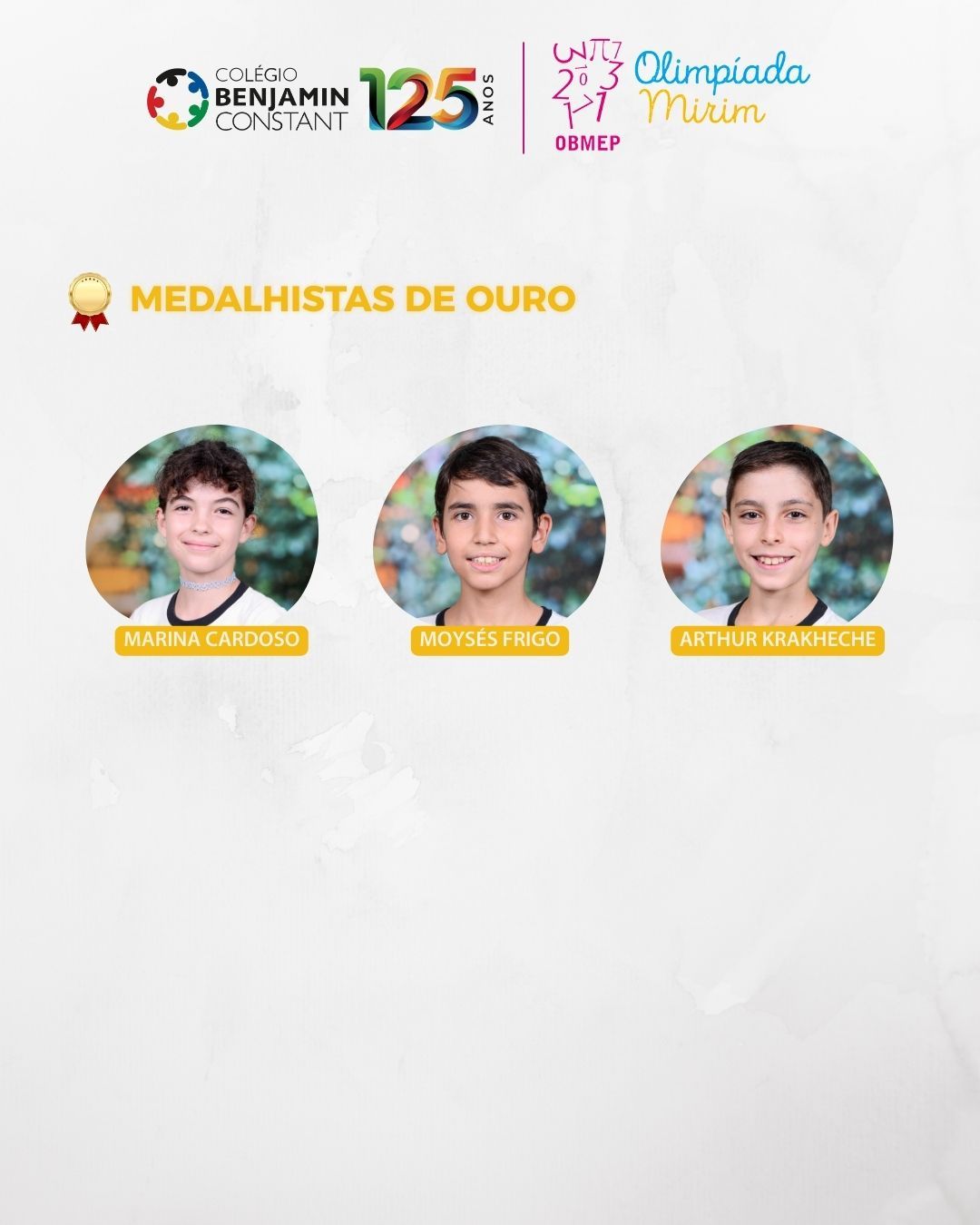 Em 2025, nossos alunos se destacaram com a premiação de 30 estudantes, sendo 3 medalhas de ouro, 9 de prata e 18 de bronze. O resultado reflete o empenho dos alunos, o apoio das famílias e o trabalho contínuo da equipe pedagógica. Parabenizamos todos os envolvidos por essa importante conquista.