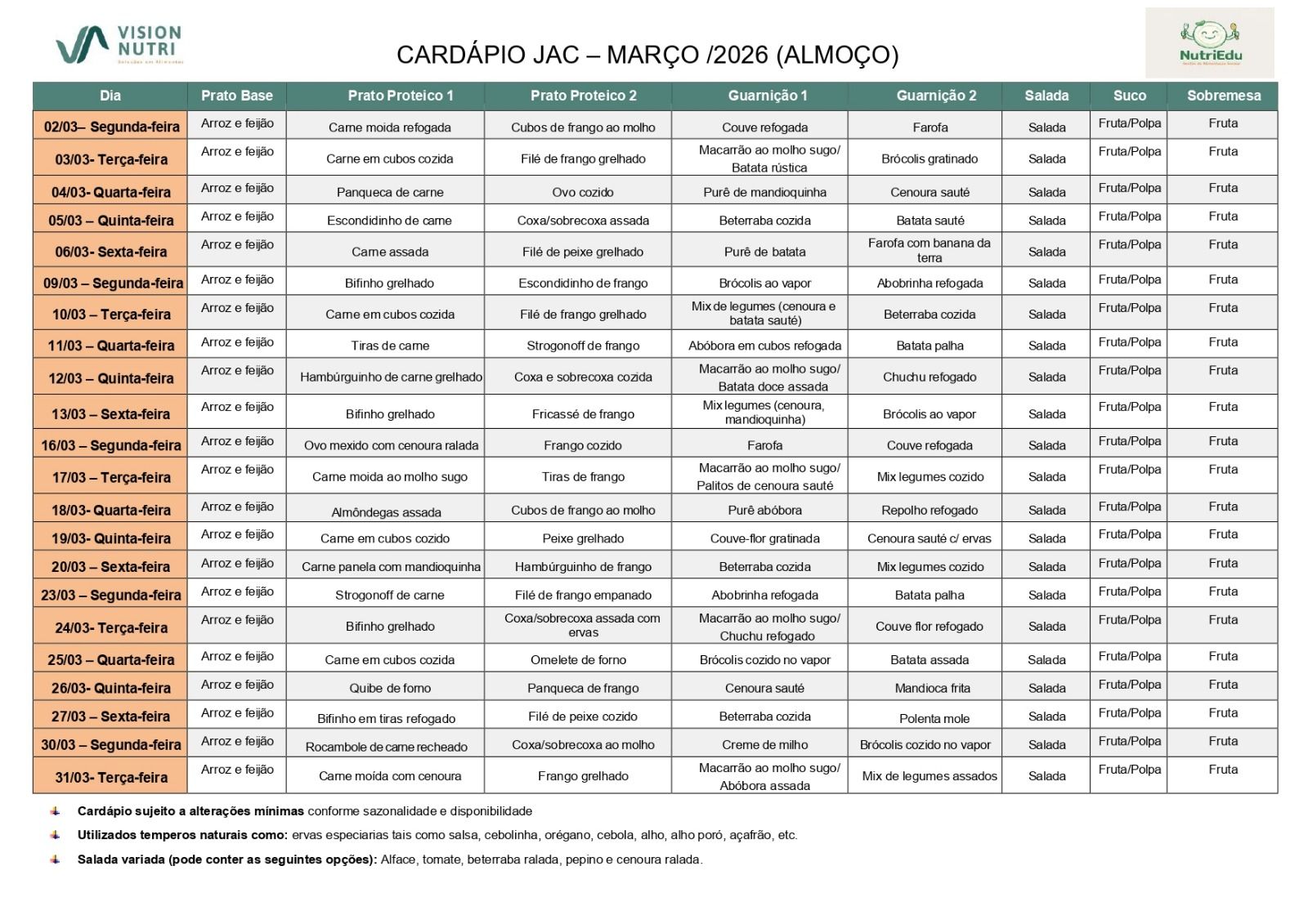 Cardápio