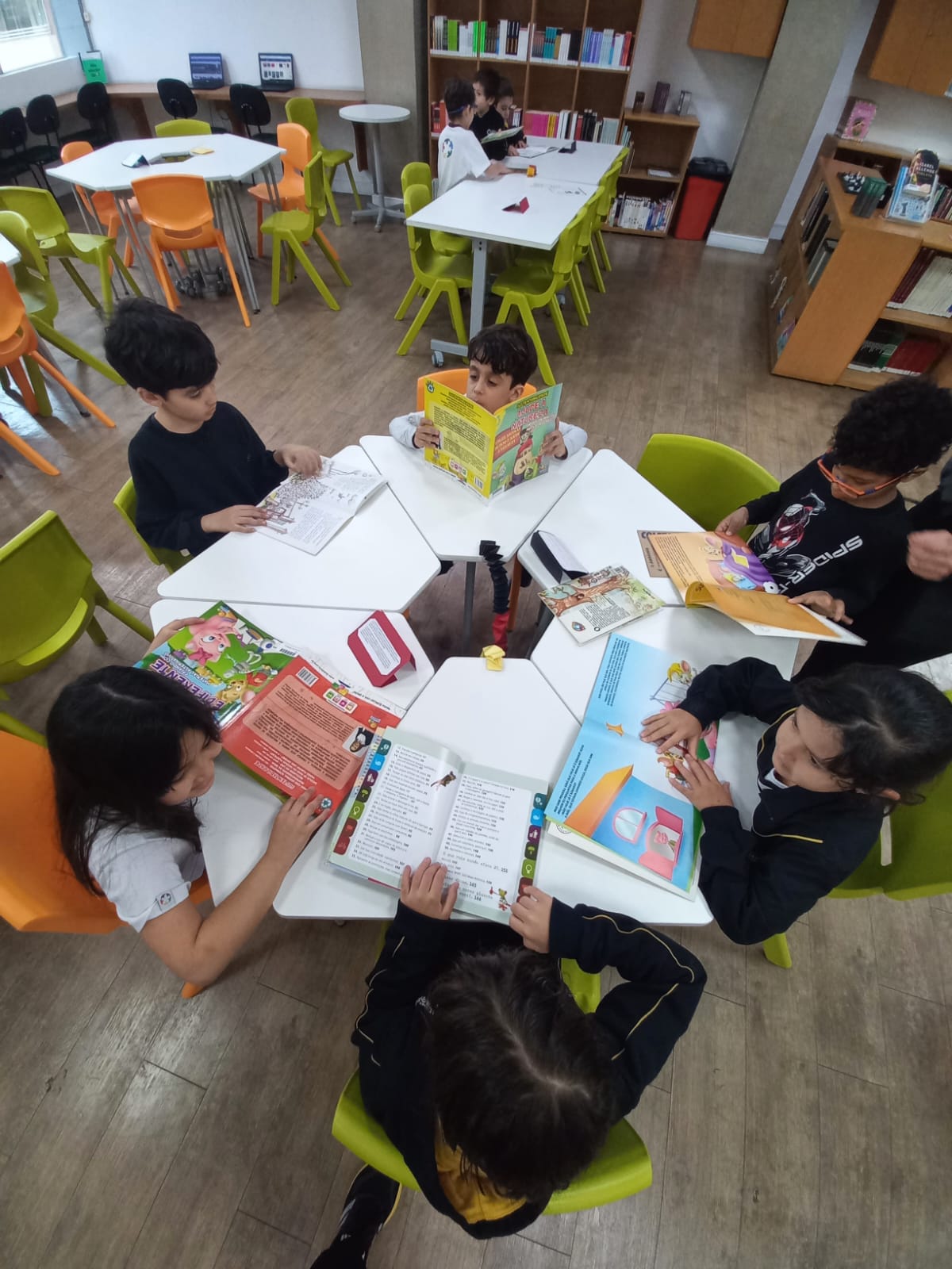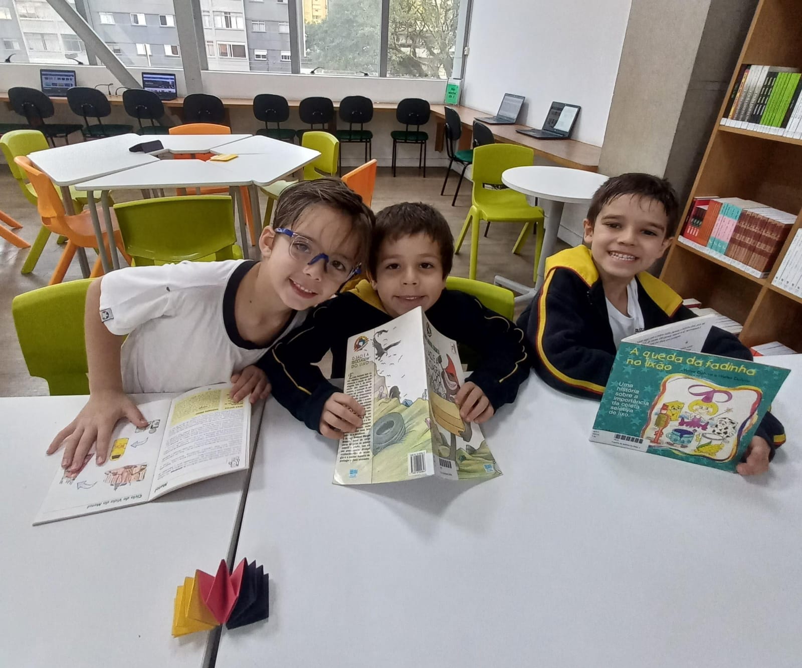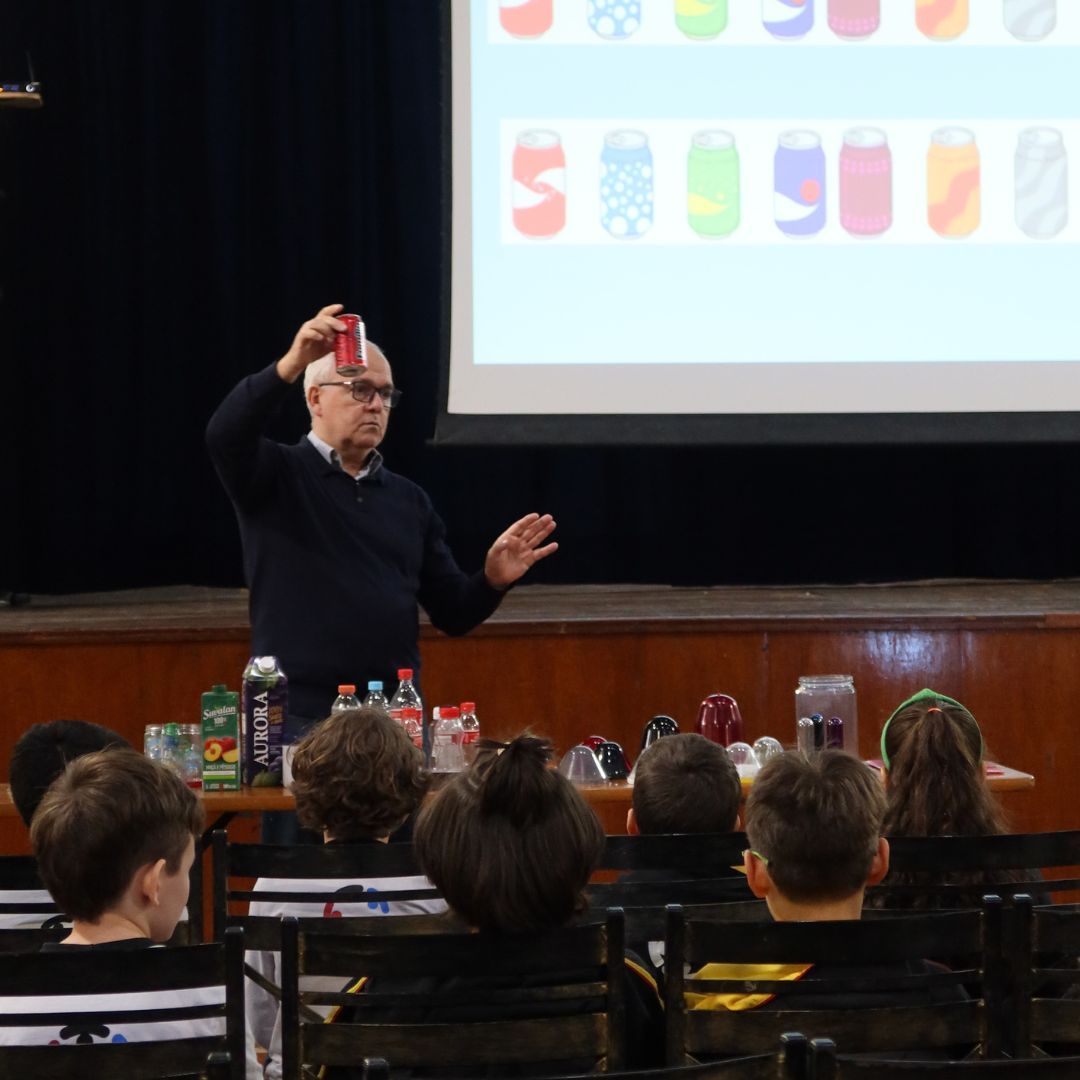 Já os estudantes dos 5ºs anos exploraram o tema a partir de notícias reais, produzindo textos reflexivos e cartazes de conscientização, inspirados pelo lema “Desacelere: Seu bem maior é a vida”. Vestidos com camisetas nas cores do semáforo, compartilharam suas produções com outras turmas, levando mensagens importantes sobre segurança, atenção e empatia no trânsito.