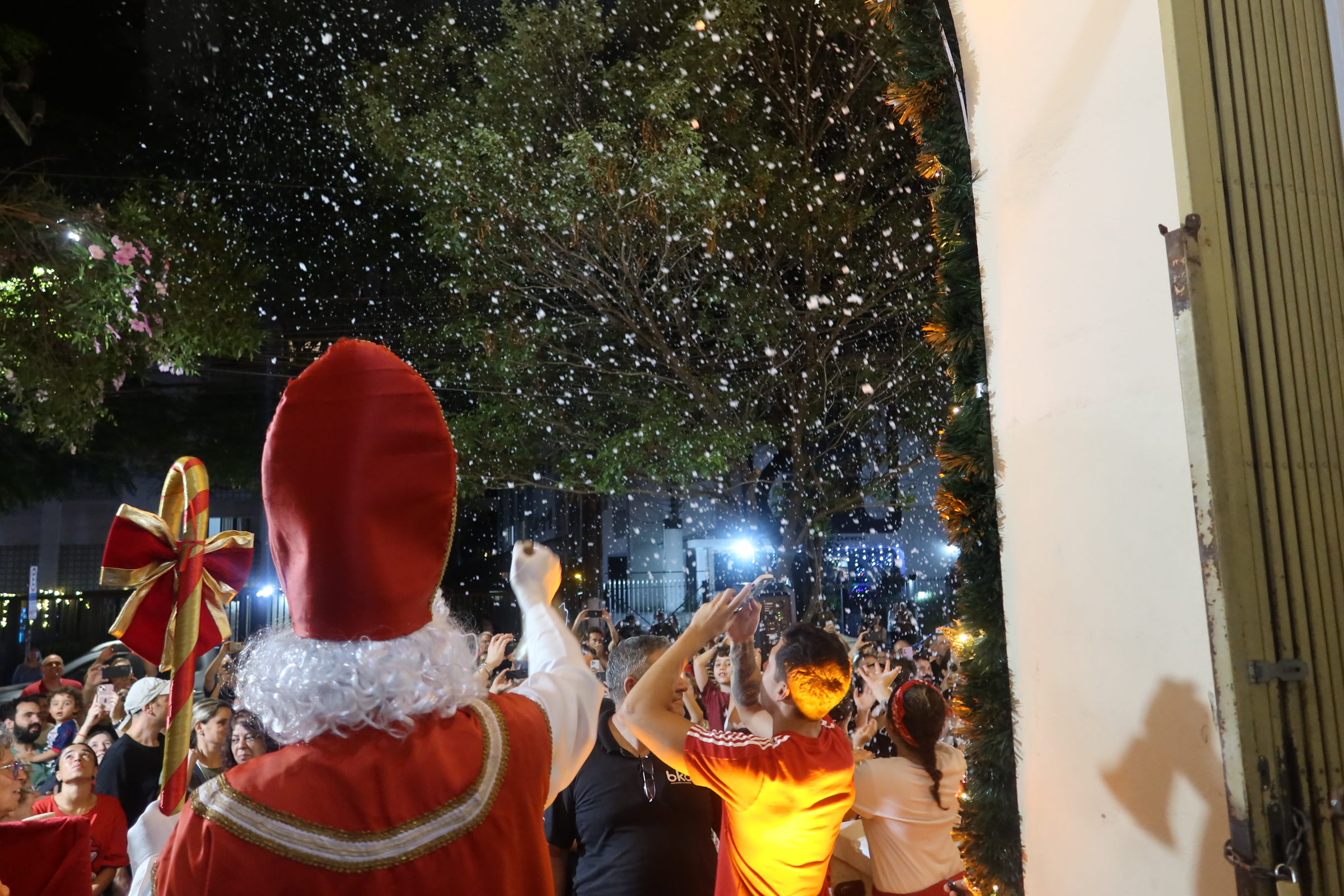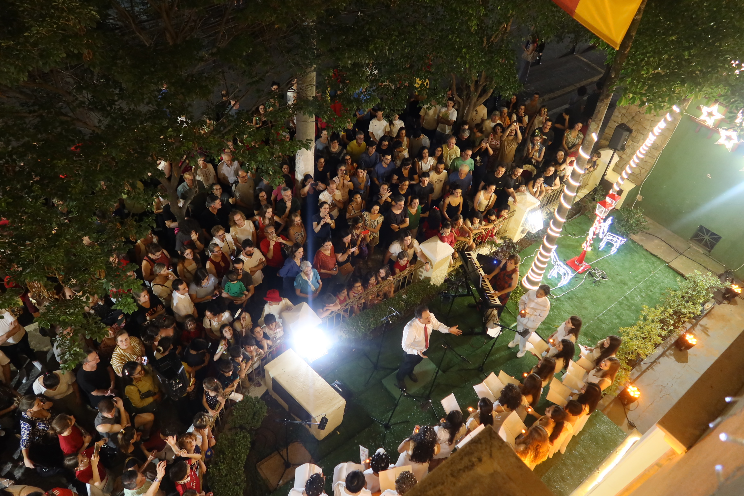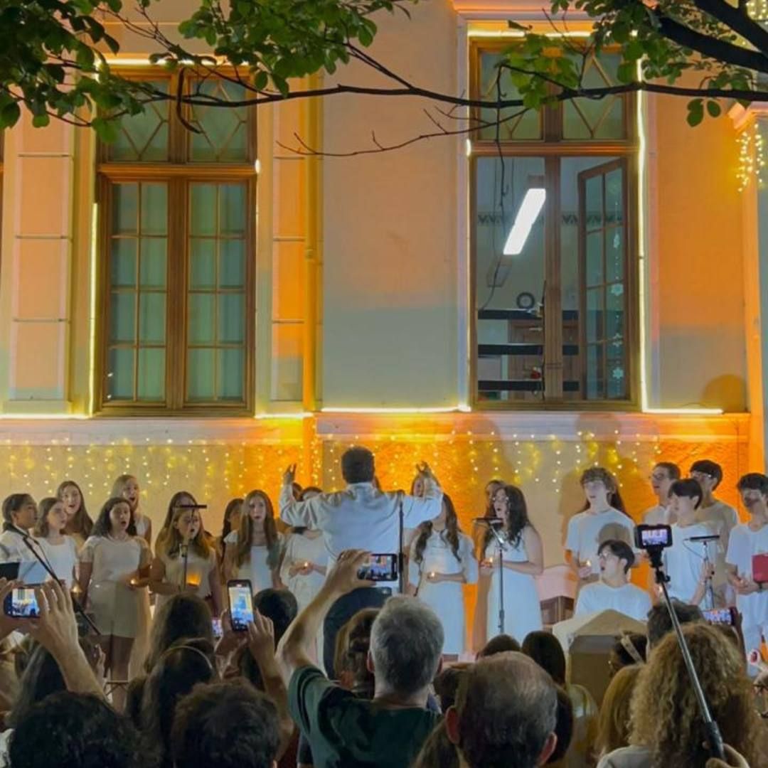 A última apresentação na fachada do colégio foi em 2019, e, este ano, retomamos a tradição. A fachada, iluminada e decorada especialmente para a ocasião, criou o cenário perfeito para a celebração!
