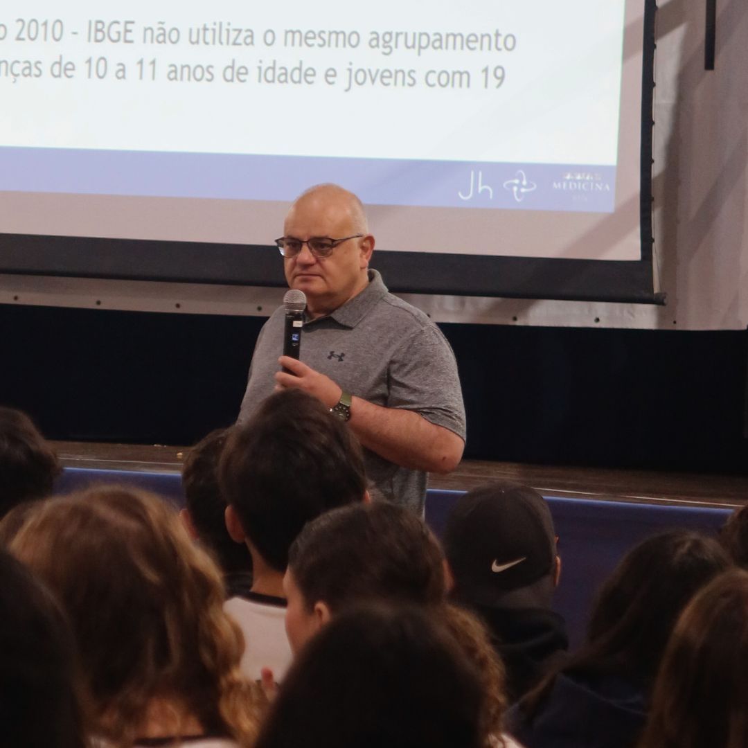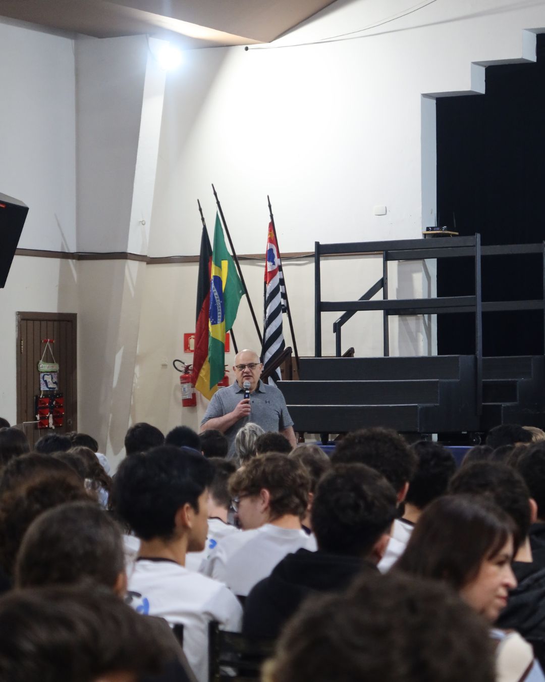 As palestras com o Prof° Dr° Jorge Hallak foram realizadas com sucesso nos dias 13 e 14 de novembro, reunindo alunos do 9º ano, Ensino Médio e também pais e responsáveis. Durante os encontros, temas essenciais como uso de álcool, drogas, anabolizantes, testosterona, tabagismo e vaping foram abordados de forma clara e baseada em evidências científicas. Os participantes tiveram a oportunidade de compreender os impactos desses hábitos na saúde e refletir sobre prevenção, escolhas conscientes e bem-estar.