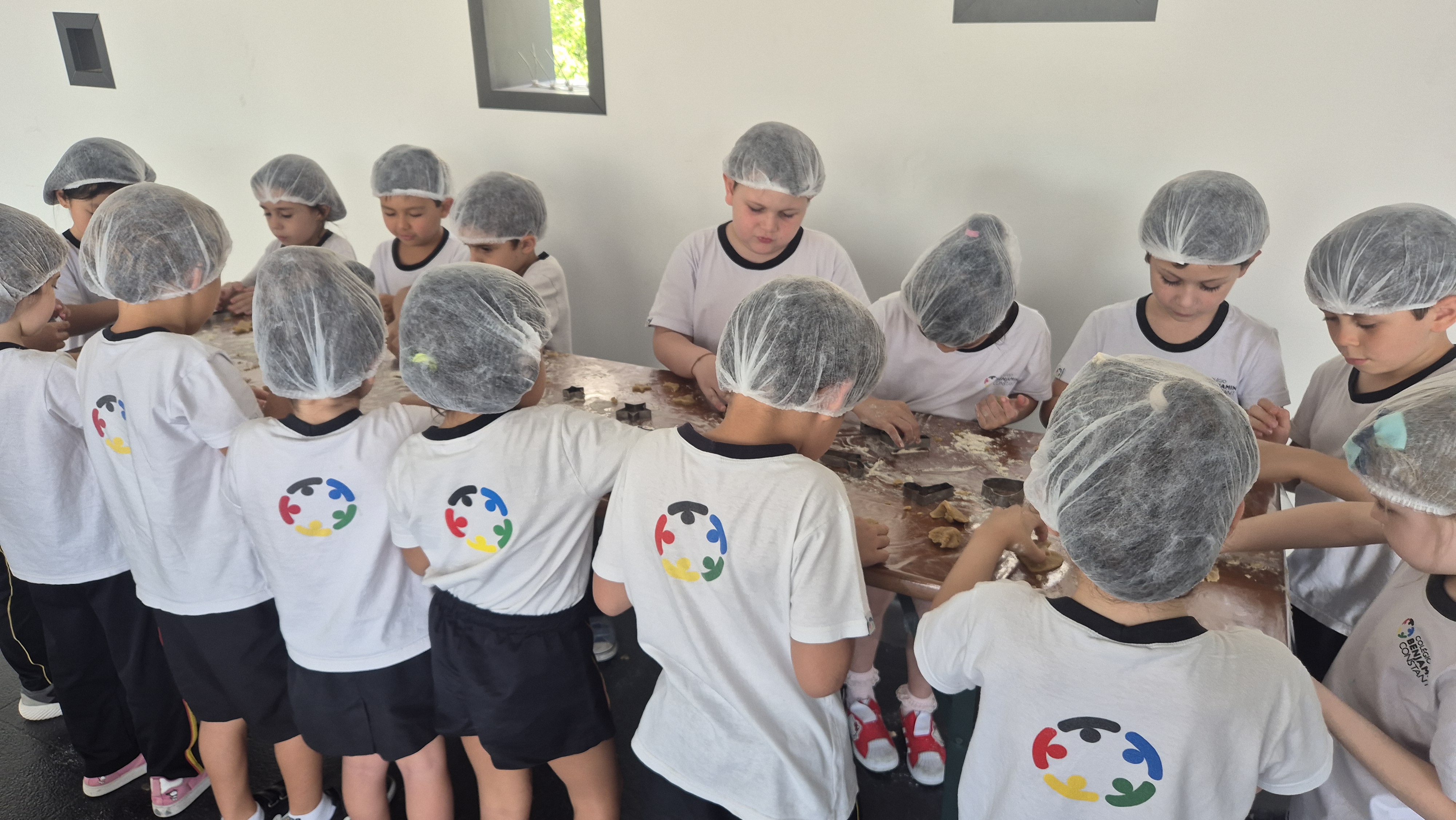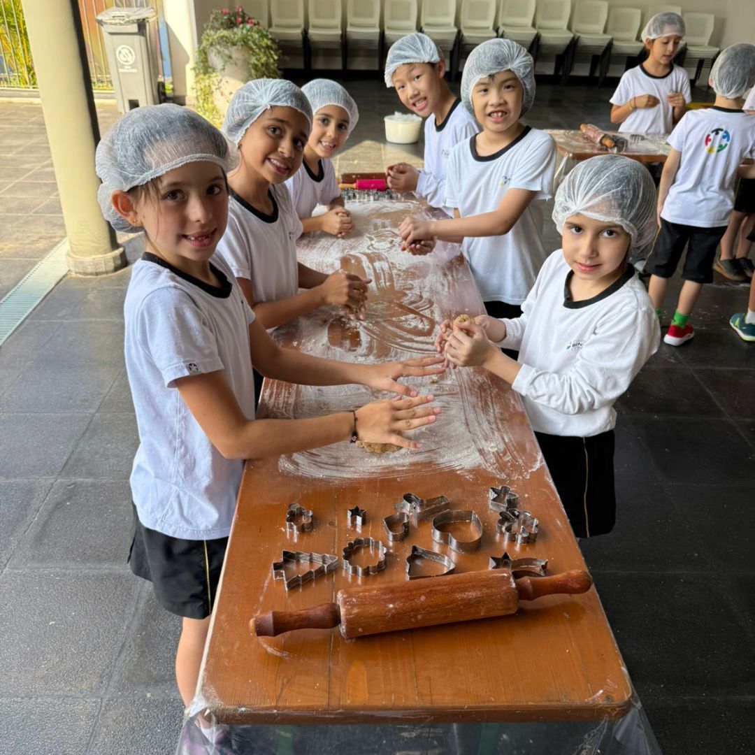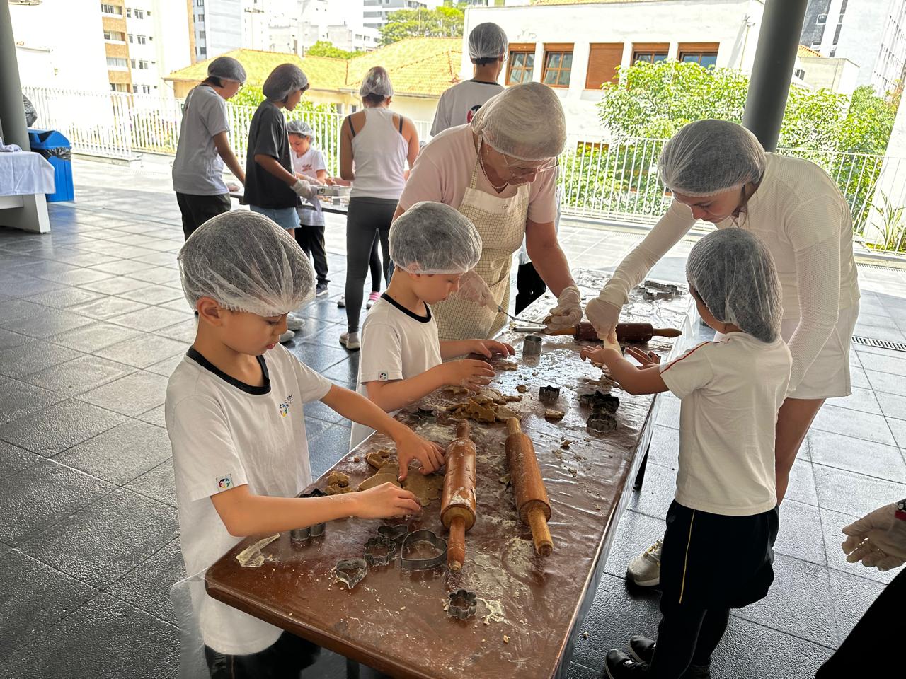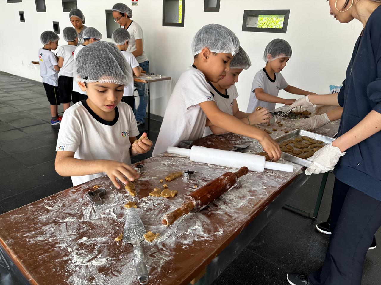As crianças trabalharam a massa, escolheram os formatos, cortaram, assaram e, ao final, saborearam as delícias típicas do Natal alemão.
