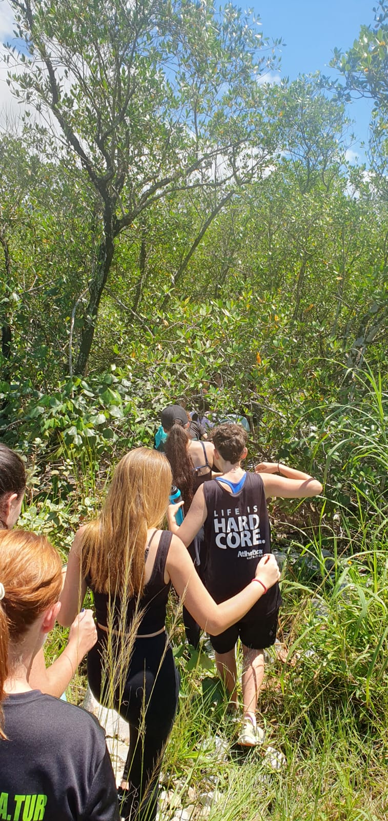 Nossos alunos tiveram contato com diferentes ambientes naturais, como mata, mangue, praia e terra. Durante as caminhadas, tiveram a oportunidade de explorar resistência e equilíbrio, além de observação e compreensão das relações entre os fatores bióticos e abióticos.