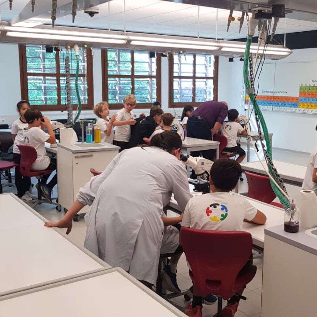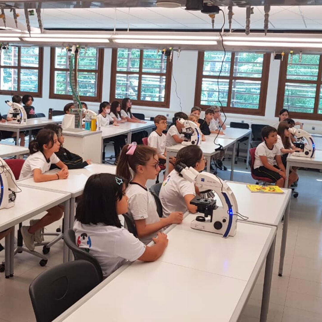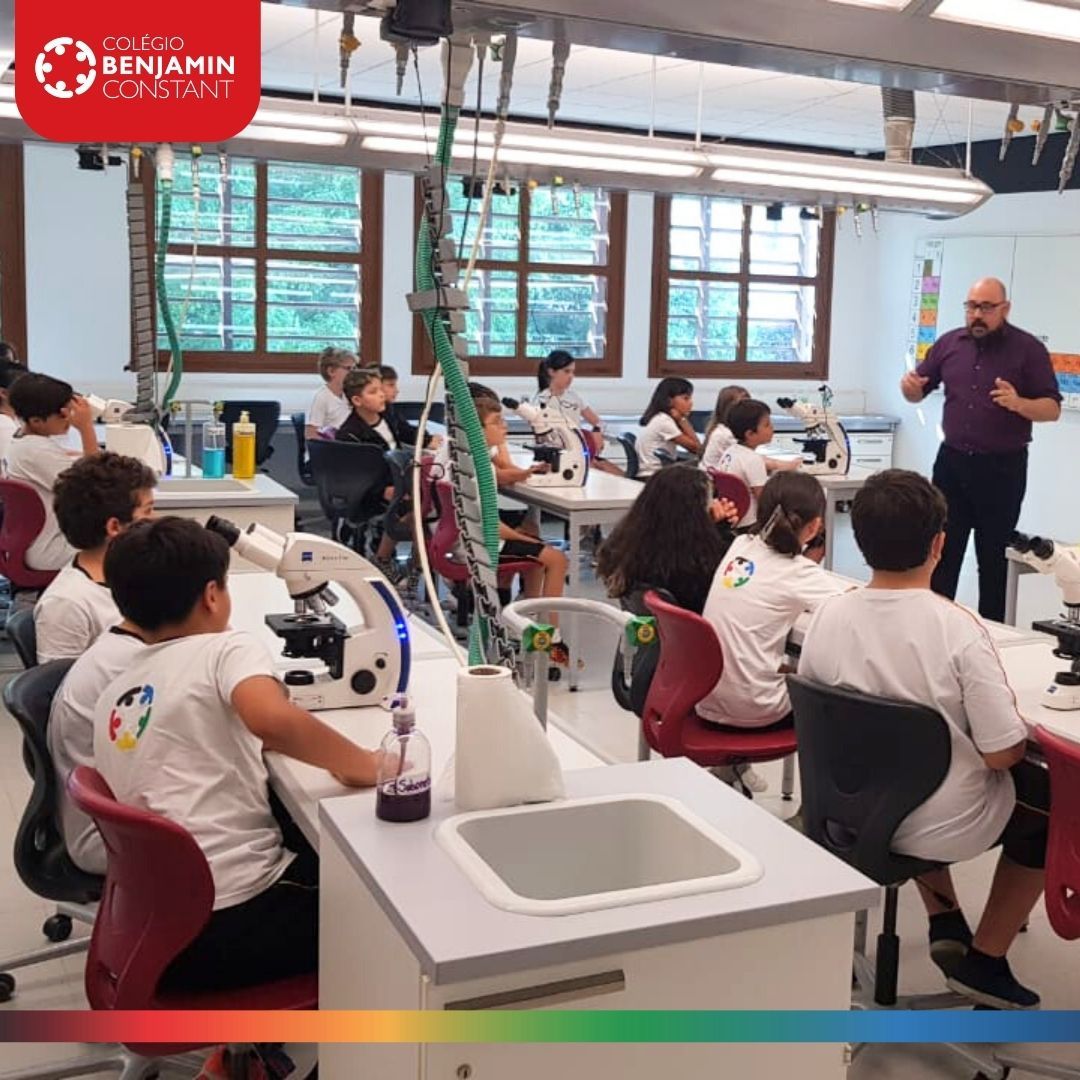 Aproveitando todos esses conhecimentos, foram ao laboratório para uma aula prática onde puderam compreender melhor como funcionam os microscópios. Foram apresentadas várias lâminas para que pudessem observar em tamanho ampliado vários objetos.