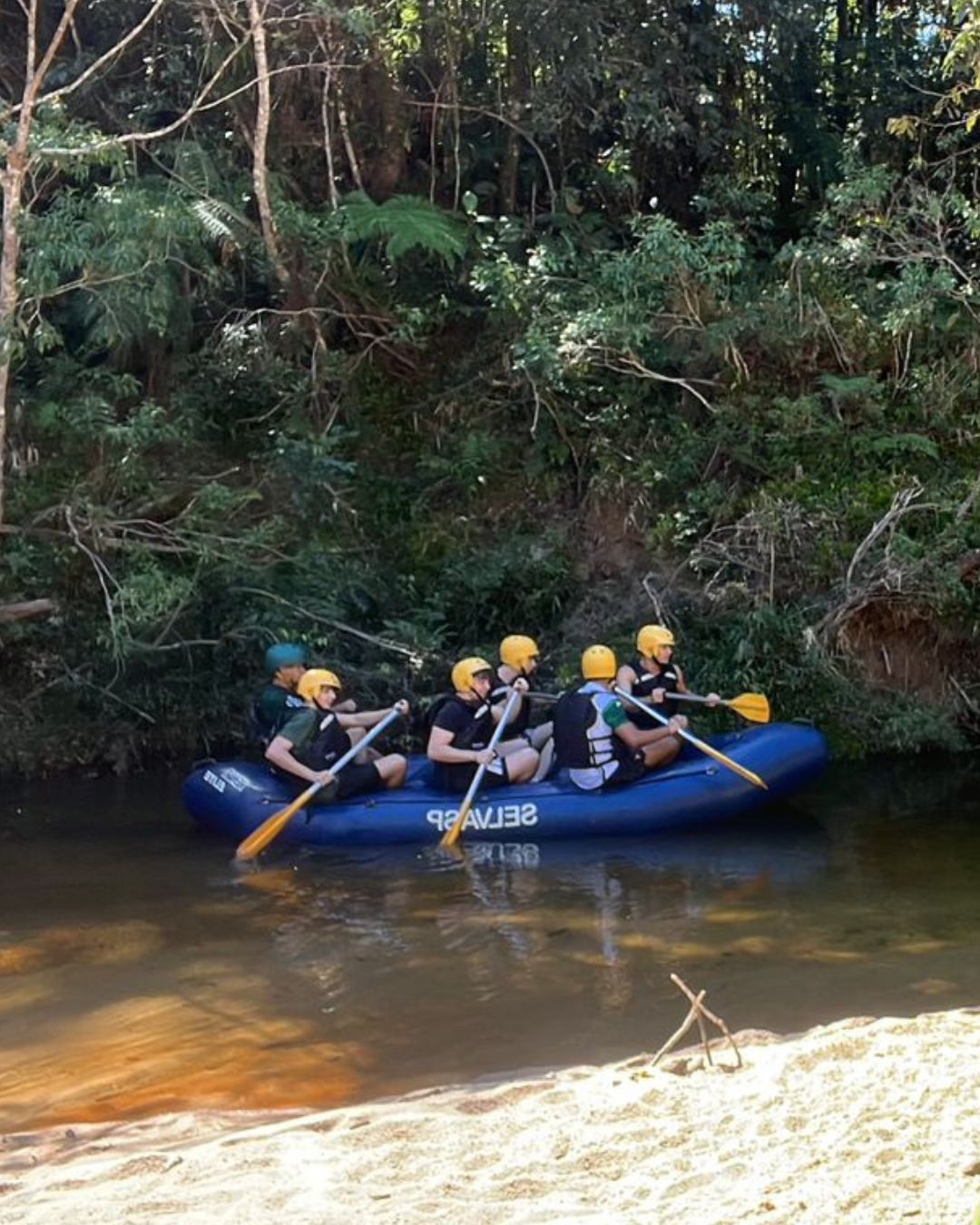 Entre as atividades realizadas estavam rafting, boia cross, stand-up paddle, rapel, tirolesa, trilha ecológica, trampolim aquático, teia de escalada e oficinas de educação ambiental. Cada momento foi uma oportunidade de aprender de forma prática, dinâmica e divertida.