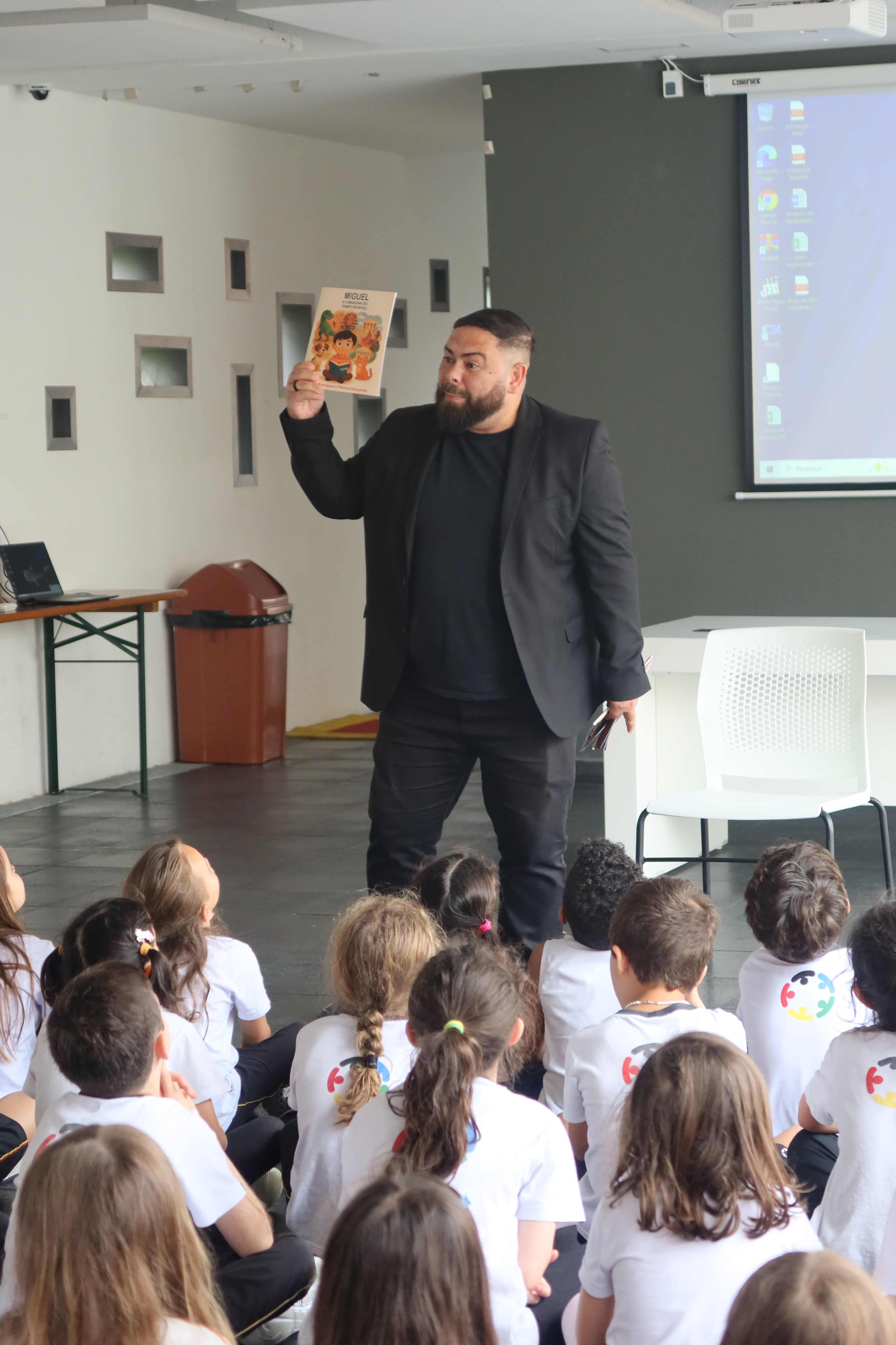 Como momento culminante, no dia 18 de novembro, recebemos a visita especial do escritor André Wagner Rodrigues, autor do livro “Luanda e o Tambor do Coração”. O bate-papo com o autor permitiu que os alunos fizessem perguntas, compartilhassem suas percepções sobre a obra e compreendessem, de forma mais profunda, temas como ancestralidade, pertencimento, empatia e a força das narrativas afro-brasileiras.