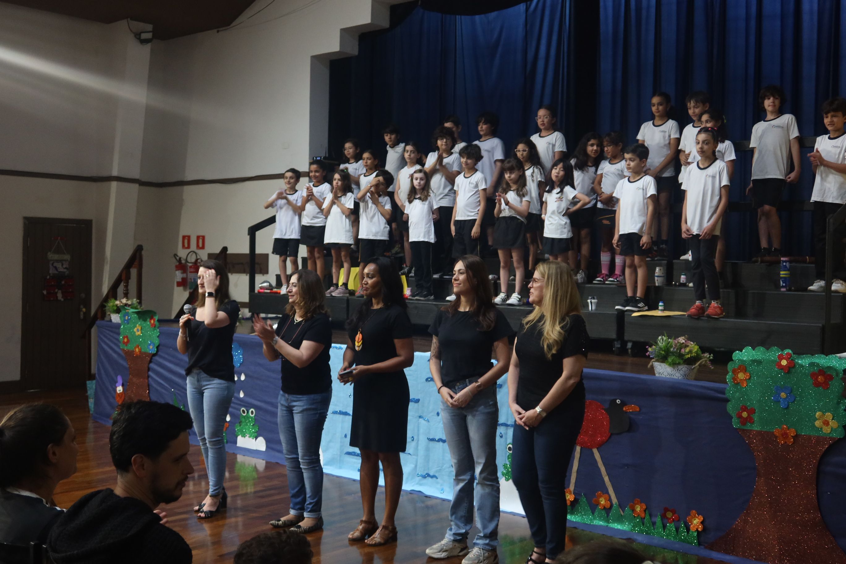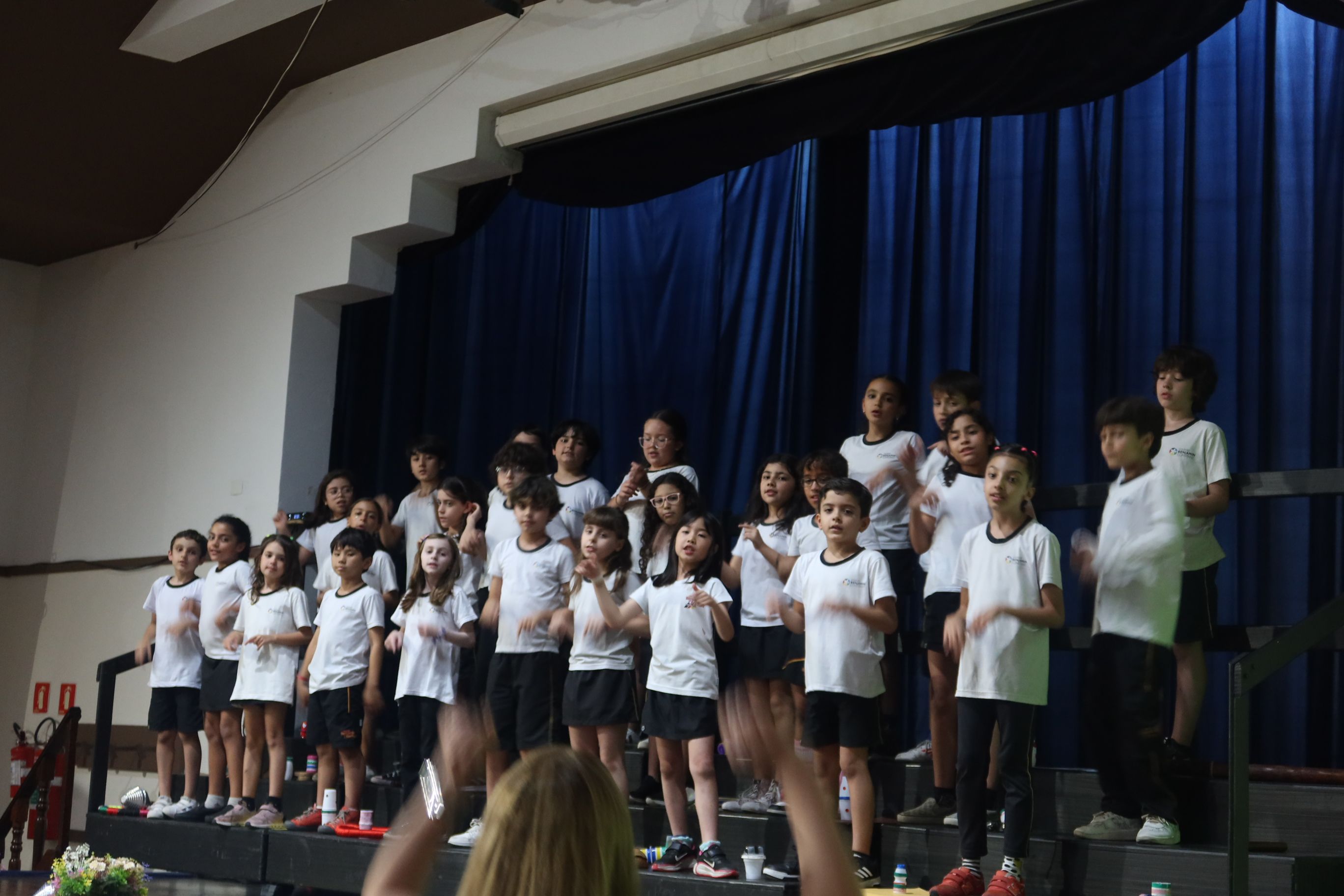 Eles cantaram em português, alemão e inglês; utilizaram instrumentos percussivos nas canções em alemão e inglês; recitaram um poema com expressões corporais e sonorização; e finalizaram com um animado samba, cheio de ritmo e alegria.
