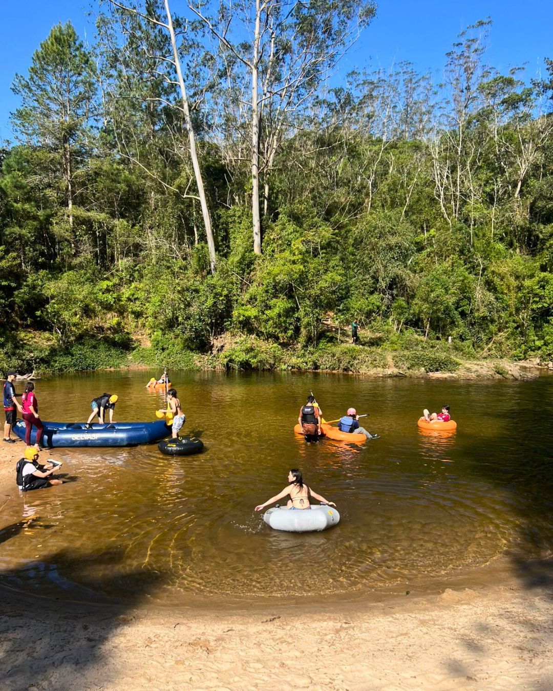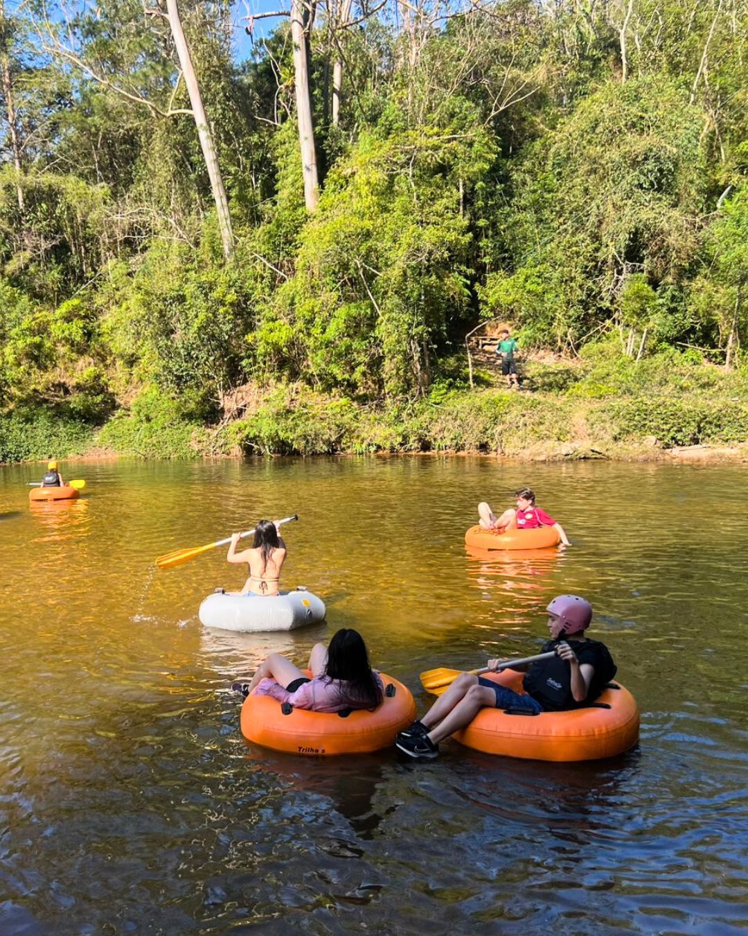 Entre as atividades realizadas estavam rafting, boia cross, stand-up paddle, rapel, tirolesa, trilha ecológica, trampolim aquático, teia de escalada e oficinas de educação ambiental. Cada momento foi uma oportunidade de aprender de forma prática, dinâmica e divertida.
