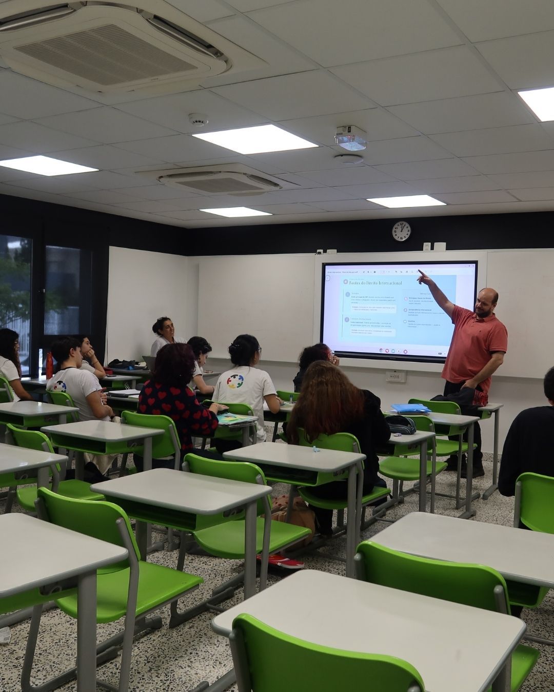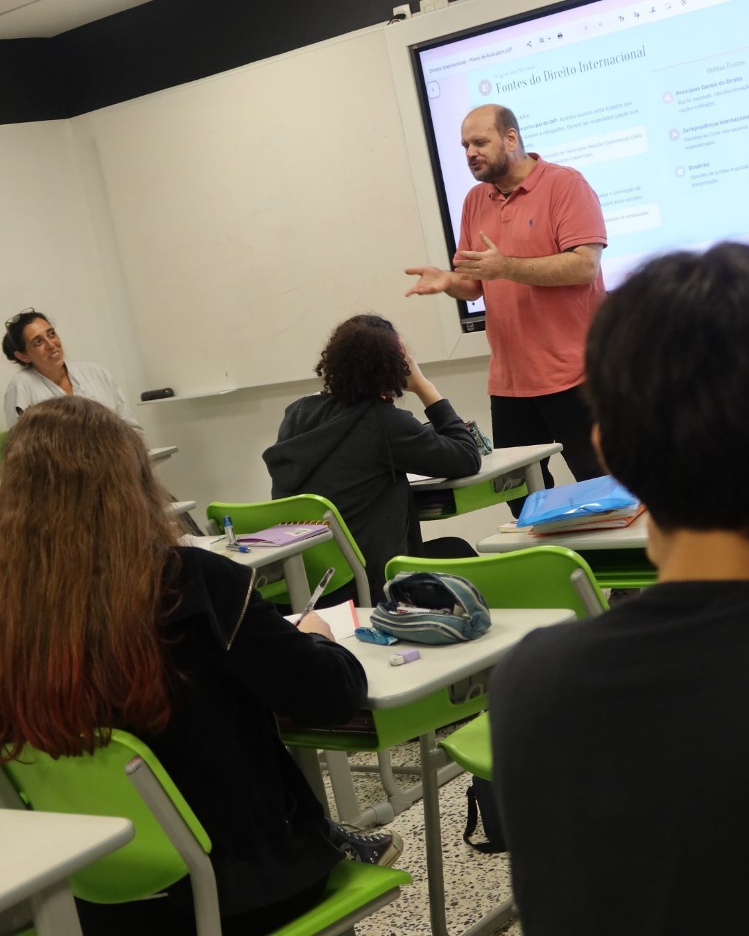 No dia 20 de março, os alunos do curso de Itinerário Formativo de Cultura e Sociedade das 2ªs séries sob a orientação dos professores Eduardo Ulian, Júlio Ardito e Tais Baltieri, participaram de uma palestra sobre noções básicas de Direito Internacional, ministrada pelo professor convidado Fábio Piovesan Bozza, formado pela Faculdade de Direito da Universidade de São Paulo do Largo São Francisco.