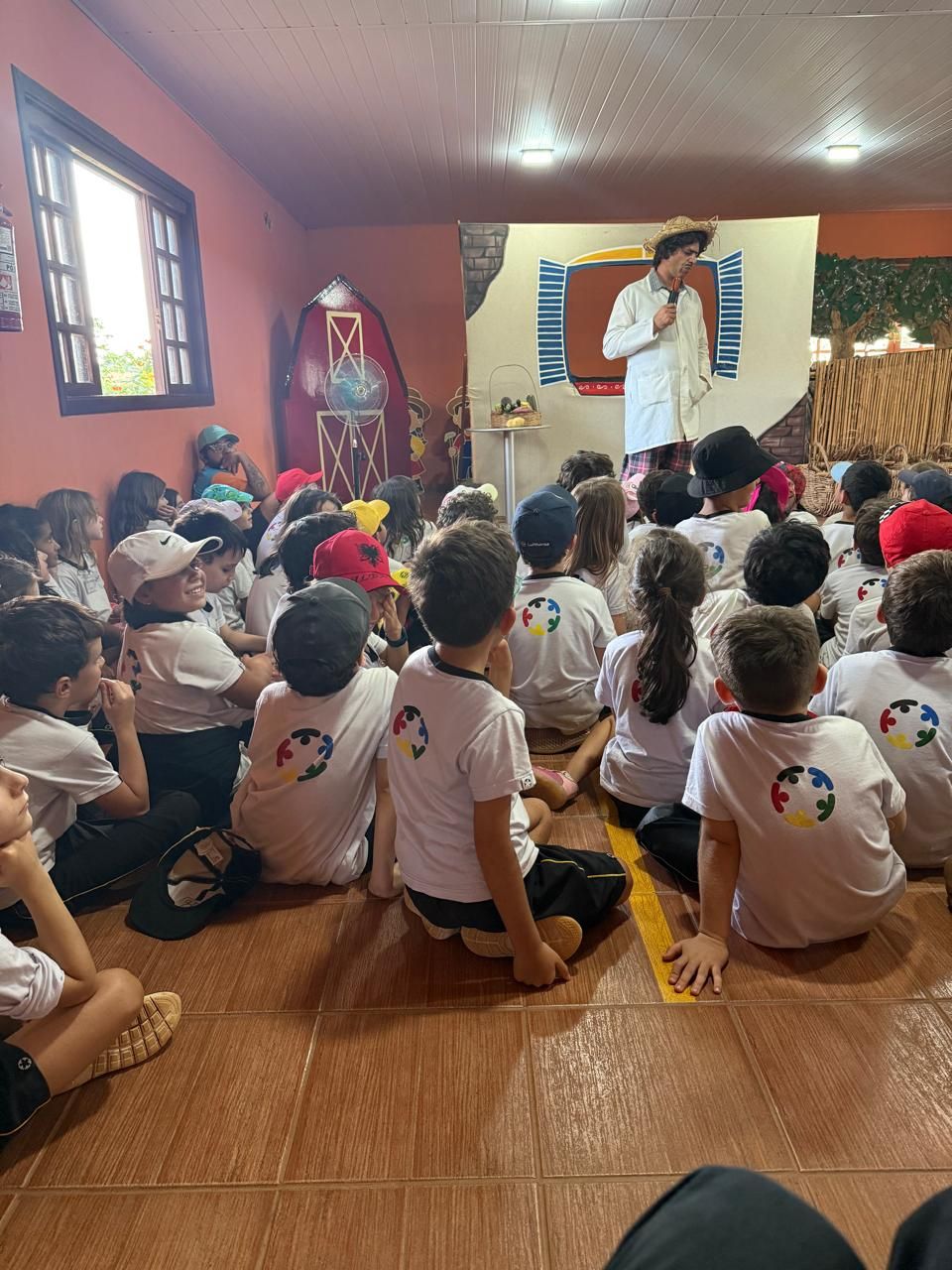 Outras atividades enriqueceram ainda mais a experiência, como o Teatro do Professor Abobrinha, o labirinto, o passeio de trator e a mini tirolesa, promovendo momentos de interação e alegria.