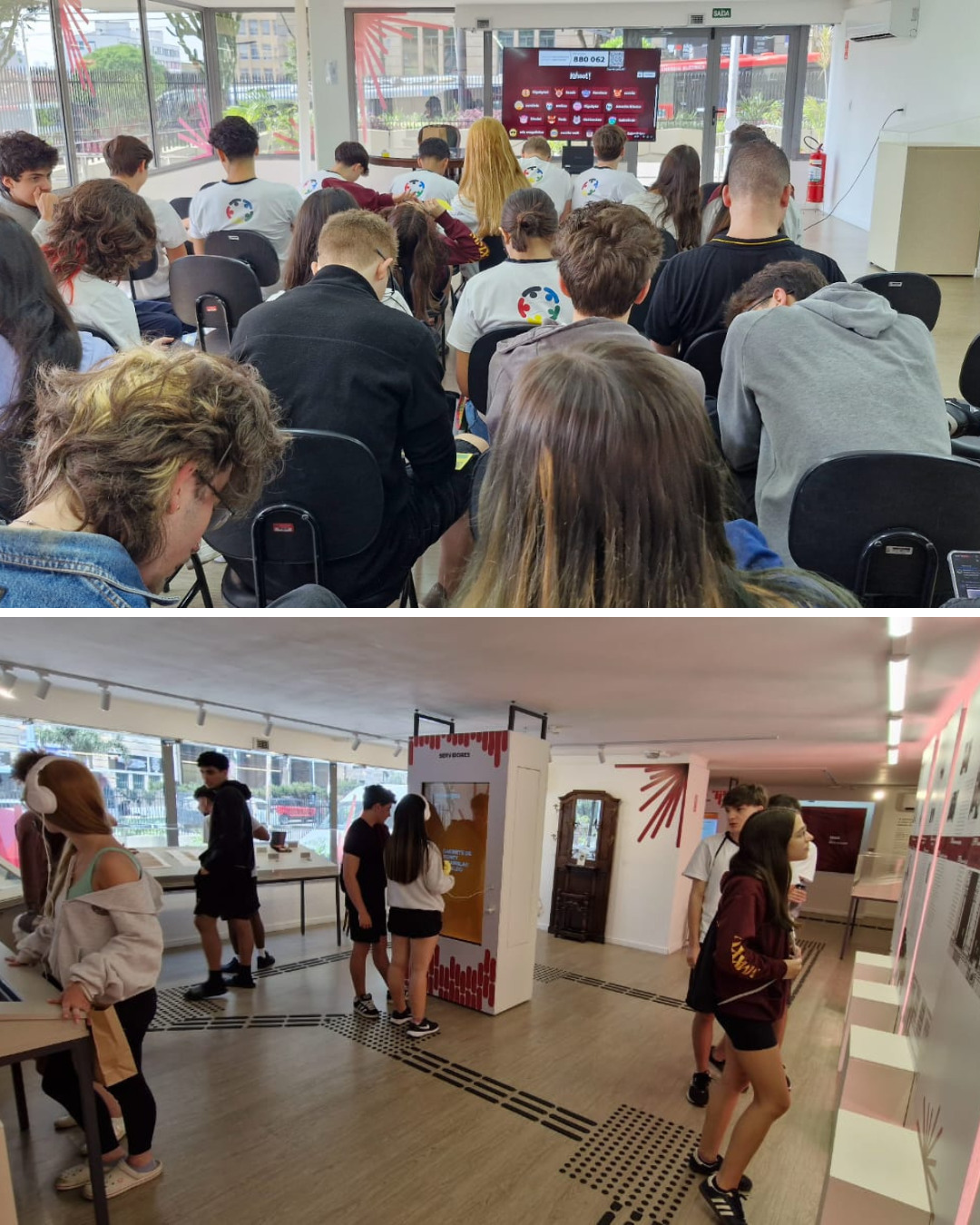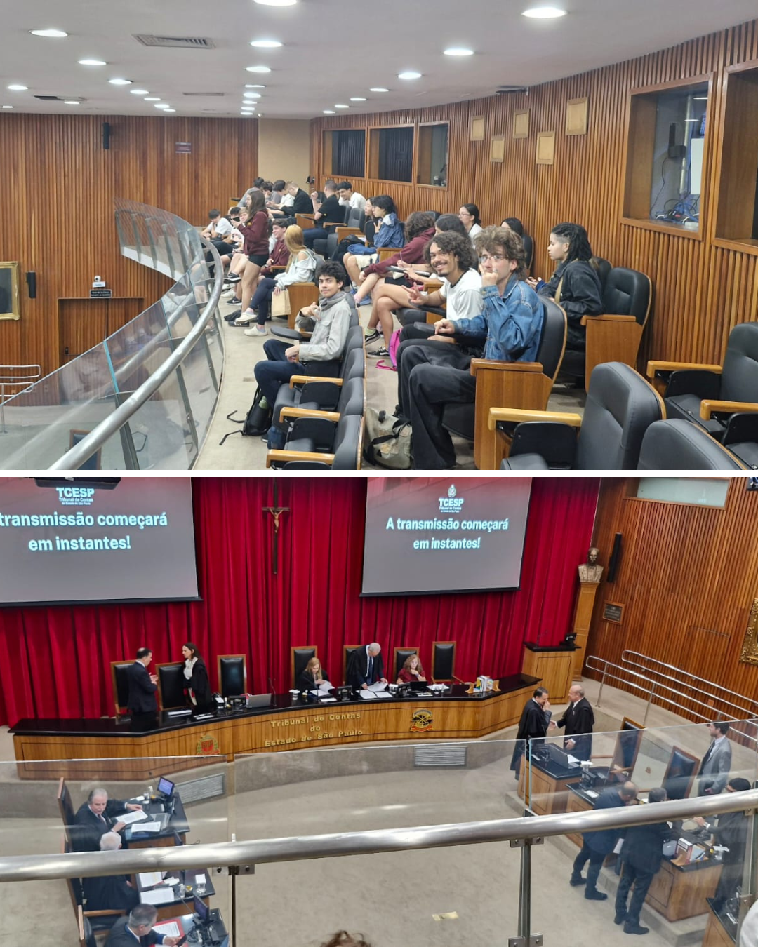 Os alunos participaram de uma dinâmica interativa na plataforma Kahoot, assistiram a uma palestra sobre o papel do Tribunal e acompanharam uma sessão do Tribunal Pleno, observando de perto o processo de tomada de decisões pelos Conselheiros. O percurso foi concluído com uma visita ao Memorial do TCESP, encerrando uma experiência enriquecedora de aprendizado e vivência prática sobre a atuação dos órgãos de controle do Estado.