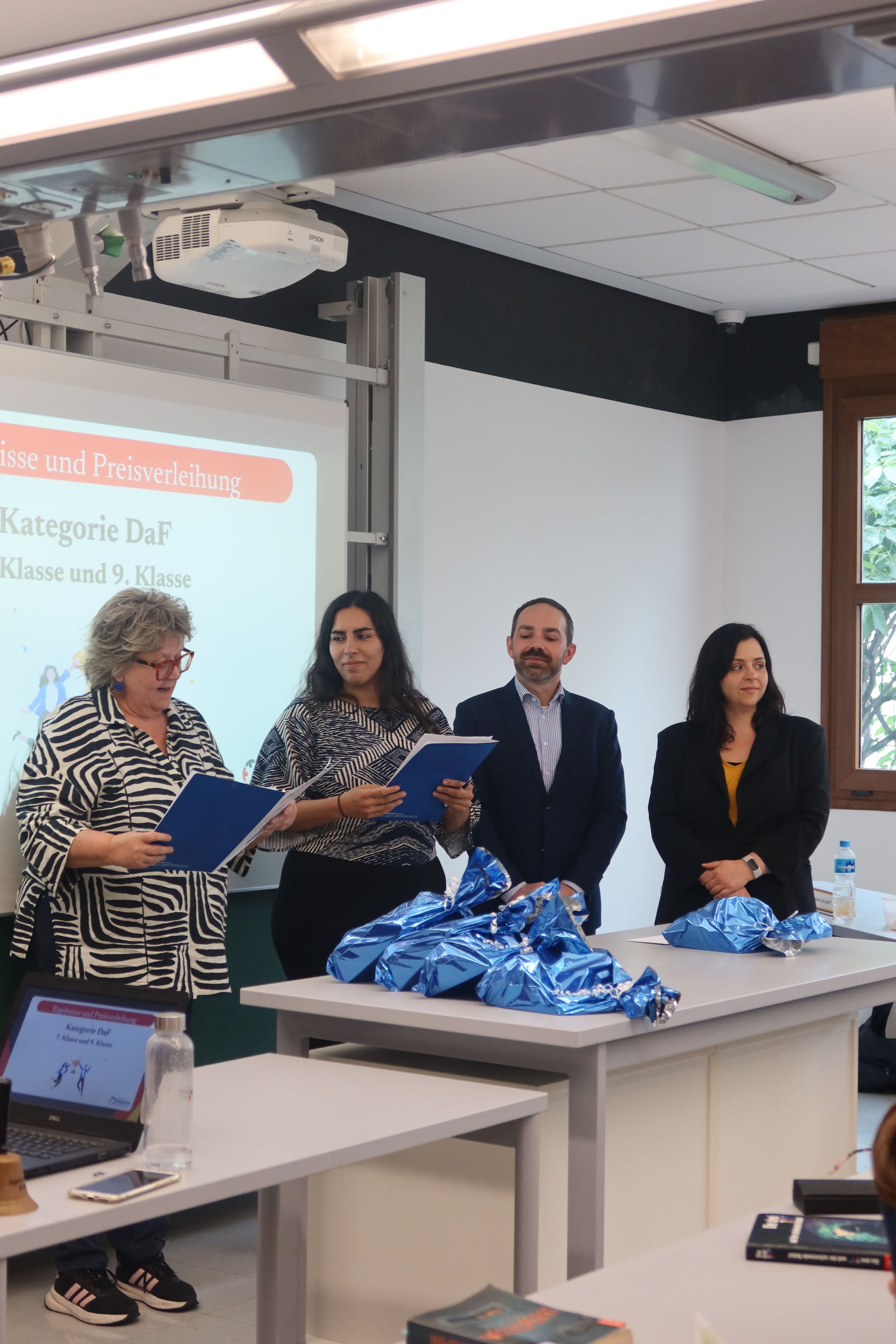 Tivemos a honra de contar com um júri composto pelo Sr. Matthias Glaschke, Cônsul de Cultura e Ciência; Sra. Melanie Daemon Barbosa, também do Consulado da República Federal da Alemanha; Sra. Sarah Al-Jorafi, representante do Instituto Goethe São Paulo; e Sra. Susanne Gattaz, presidente da Associação Paulista de Professores de Alemão.
