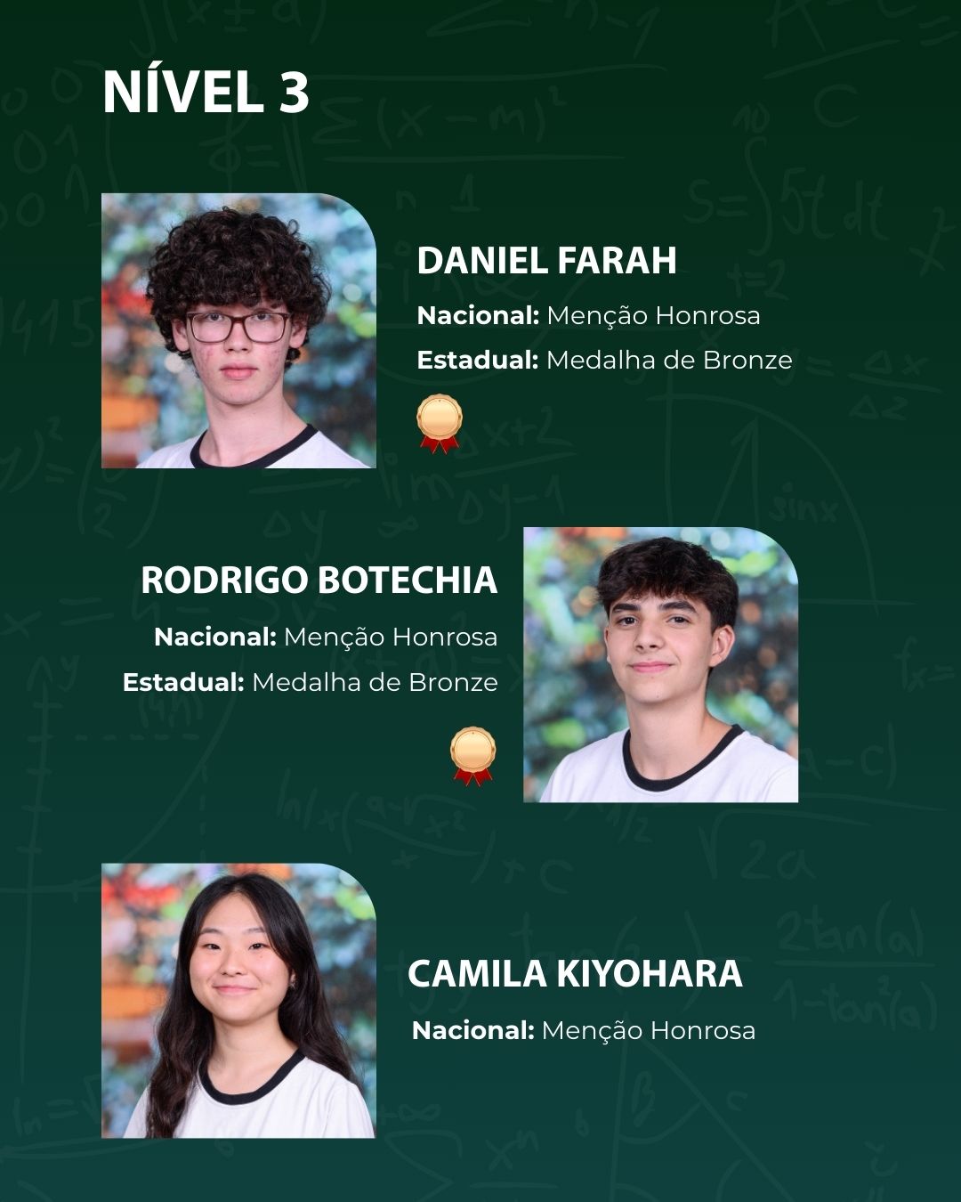 Em 2025, nossos alunos se destacaram com a premiação de 30 estudantes, sendo 3 medalhas de ouro, 9 de prata e 18 de bronze. O resultado reflete o empenho dos alunos, o apoio das famílias e o trabalho contínuo da equipe pedagógica. Parabenizamos todos os envolvidos por essa importante conquista.
